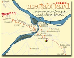 Autoput Zagreb-Beograd, 2 panoa na stubu sa desne strane po ulasku u Srbiju preko graničnog prelaza Batrovci, na 600 m iza morovićke šume, jedna strana u smeru od granice, druga strana u smeru ka granici, postavljeni 2008.